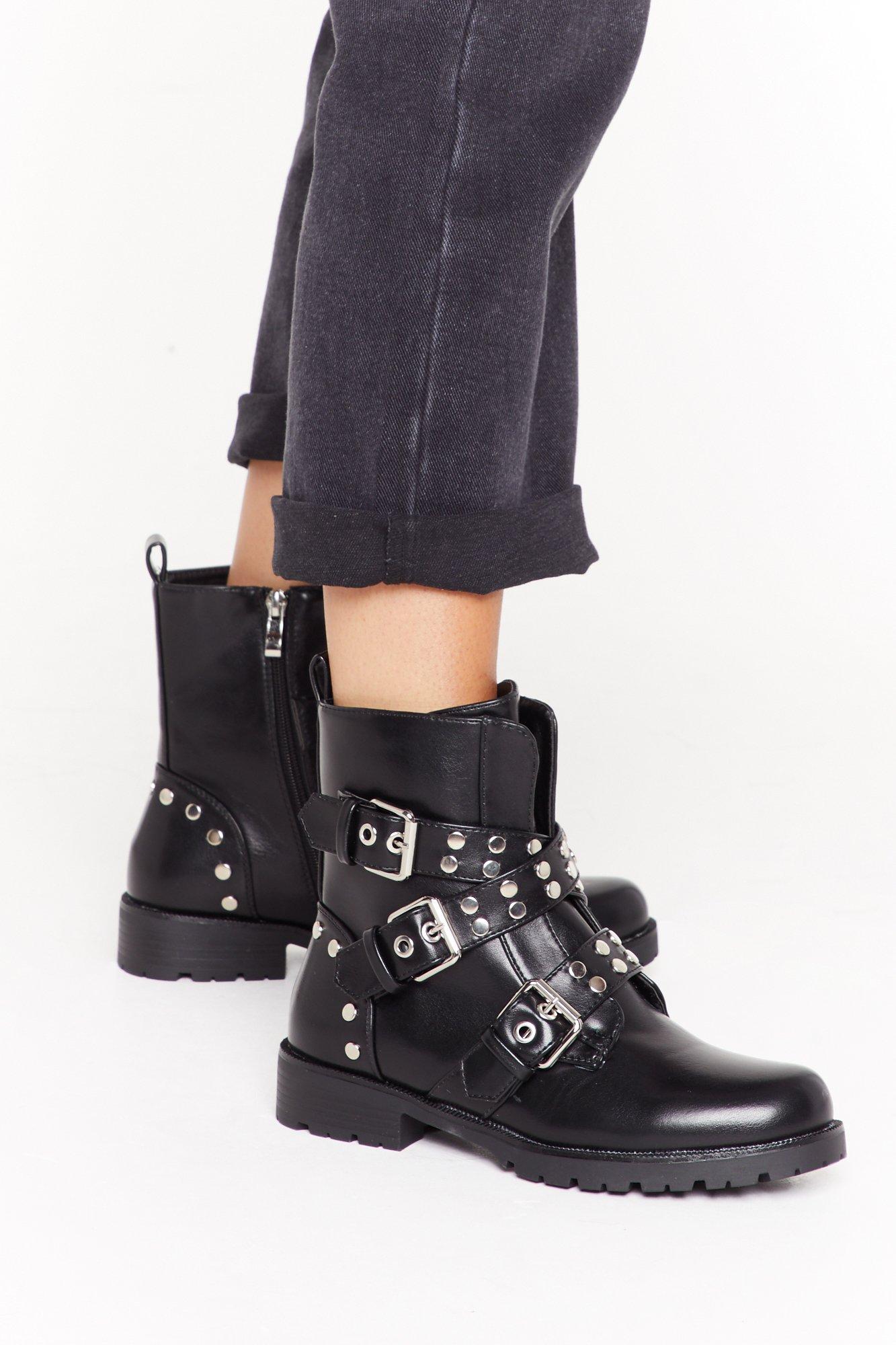 Stud For You Faux Leather Buckle Boots