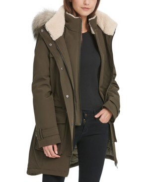 DKNY Faux-Fur-Trim Hooded Anorak