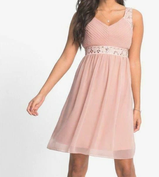 Damen Sommer Kleid Rosa mit Straß 36 38 40 42 S M L Knielang neu 928