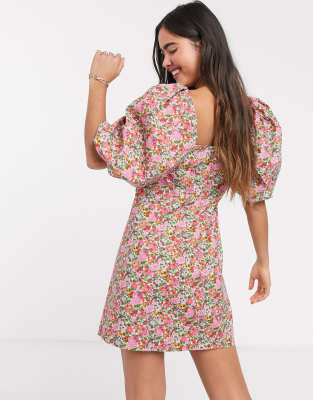Mango volume sleeve floral mini dress