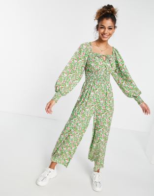 Floral Print Wide Leg Jumpsuit Green