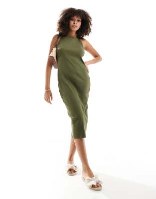 Pimkie – Geripptes Racerneck-Midikleid in Khaki